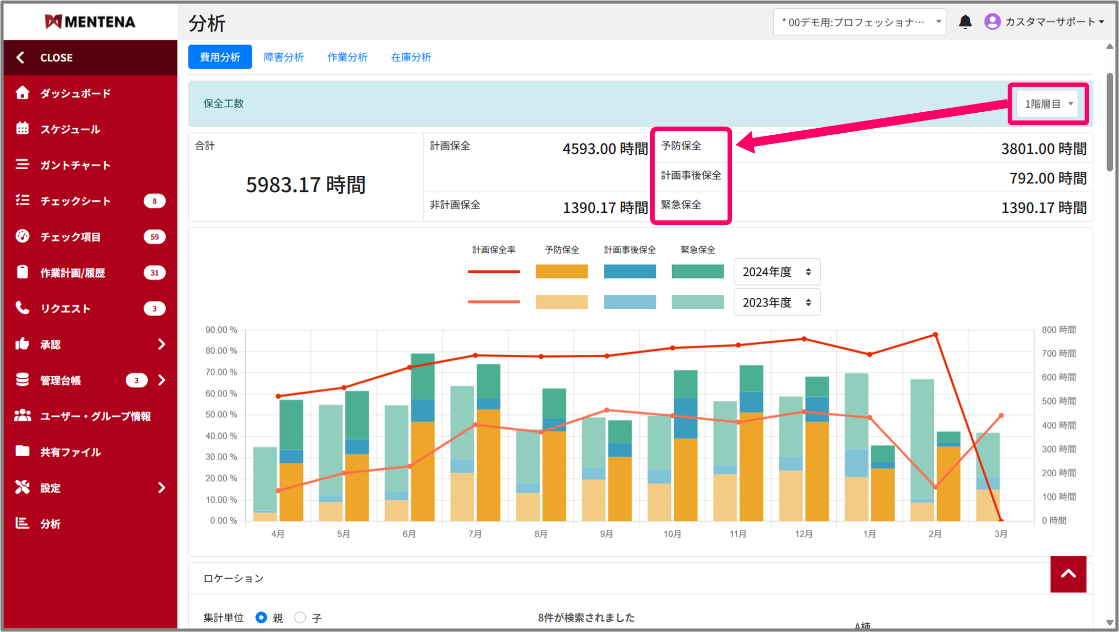また、分析機能での計画保全率にも反映がされます。