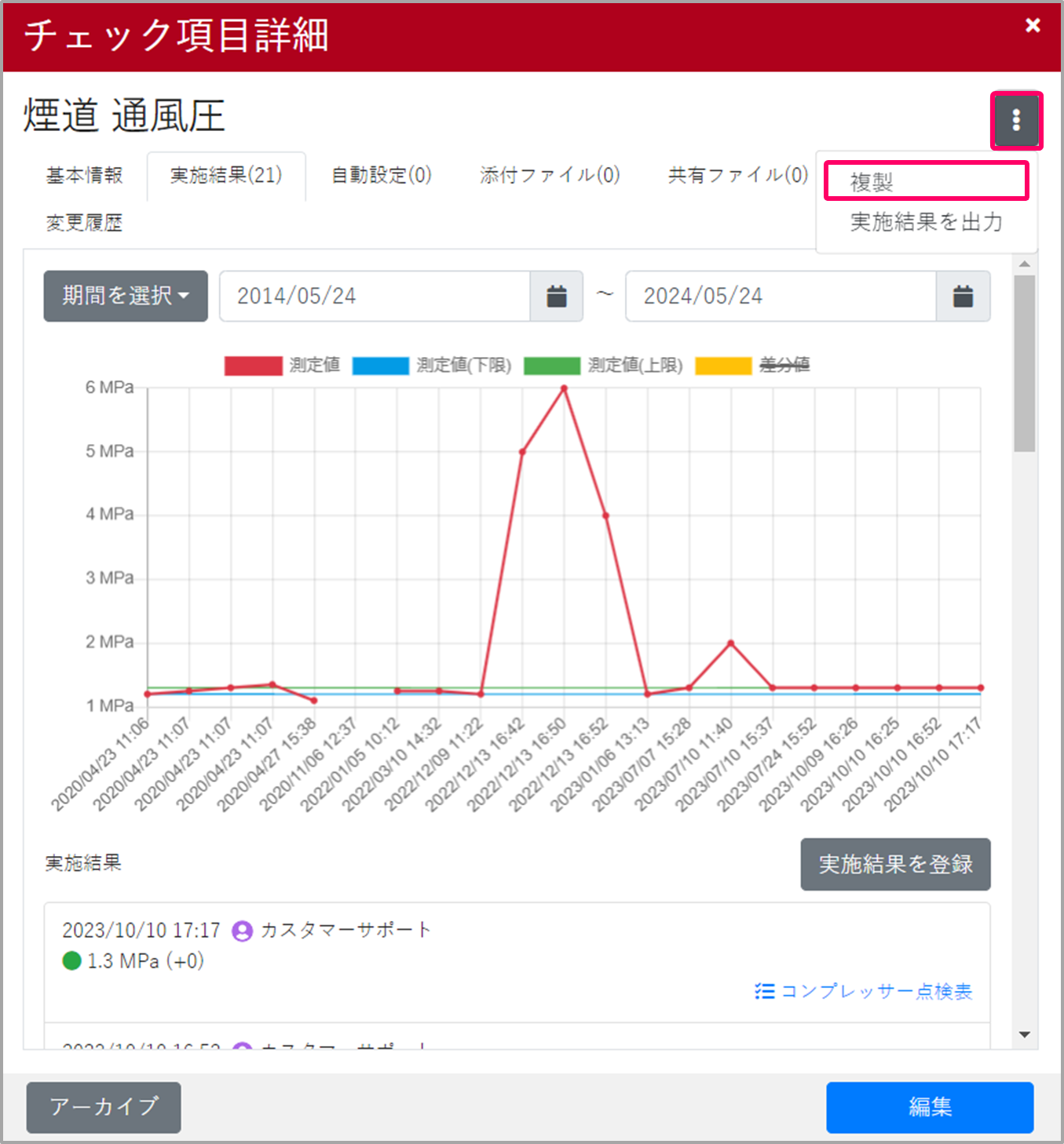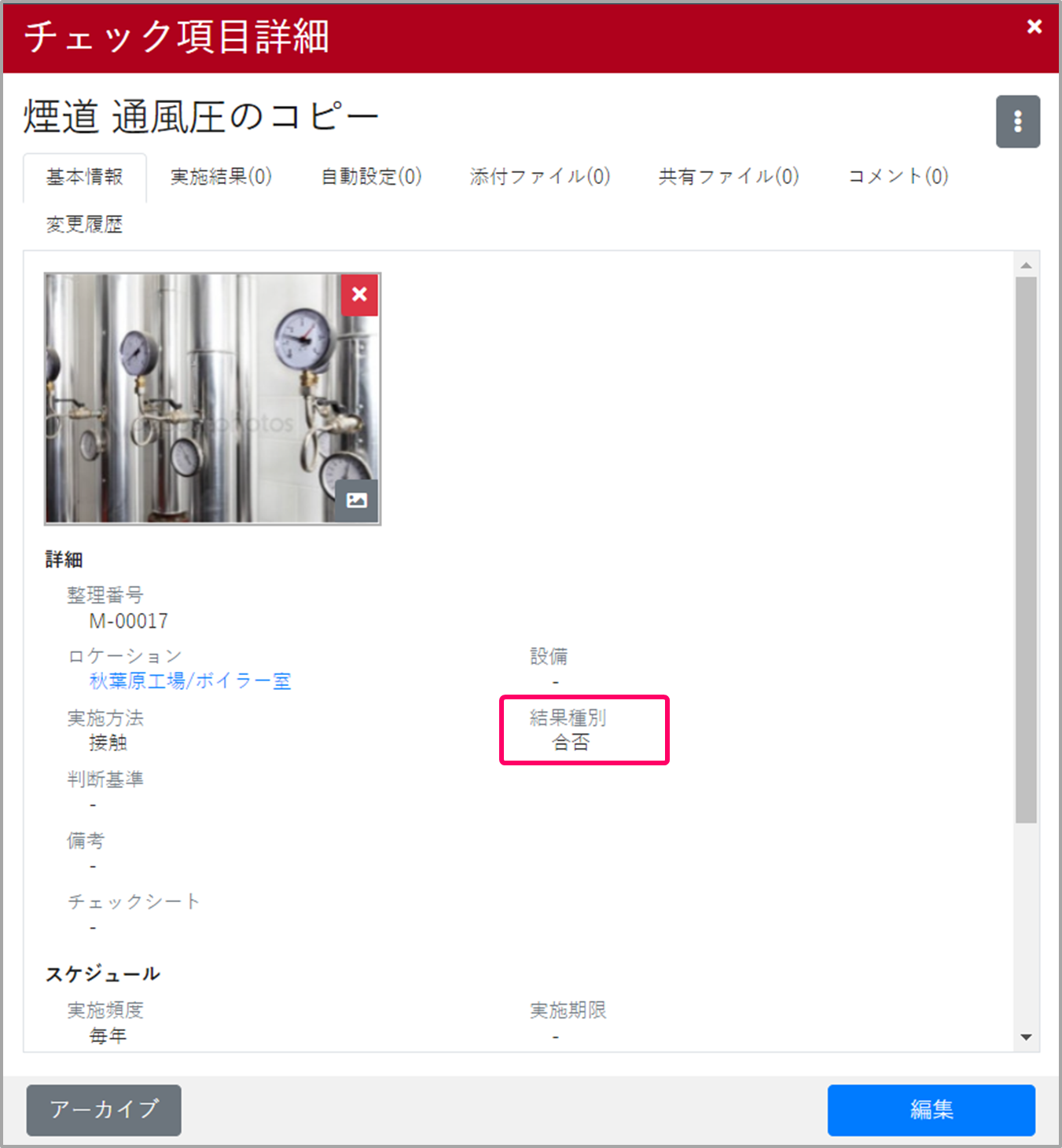 2022年6月時点、チェック項目の結果種別(数値/合否)を後から「編集」で変更することができません。