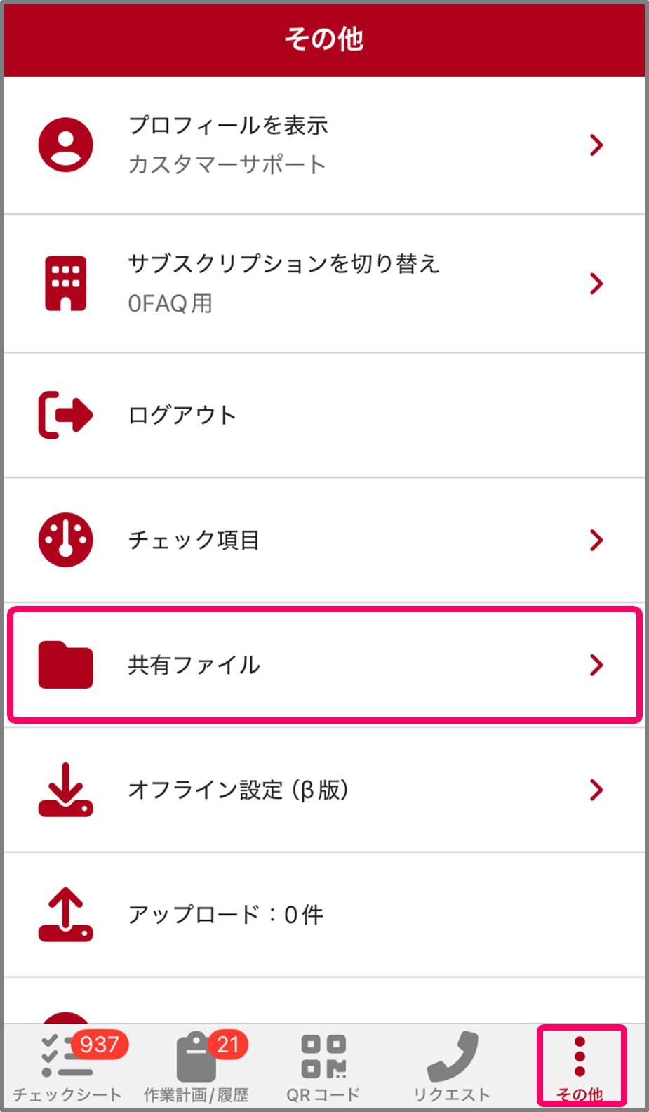 「共有ファイル」をタップしてください。