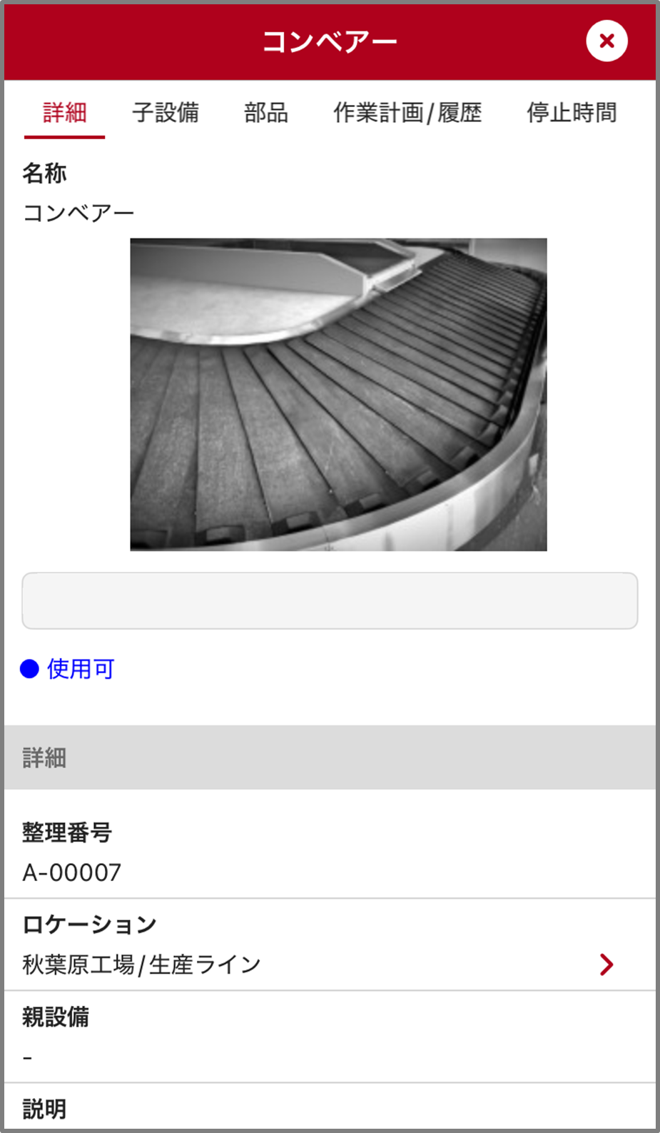 設備の詳細画面を開きます。詳細画面の開き方はこちらのページをご参照ください。
