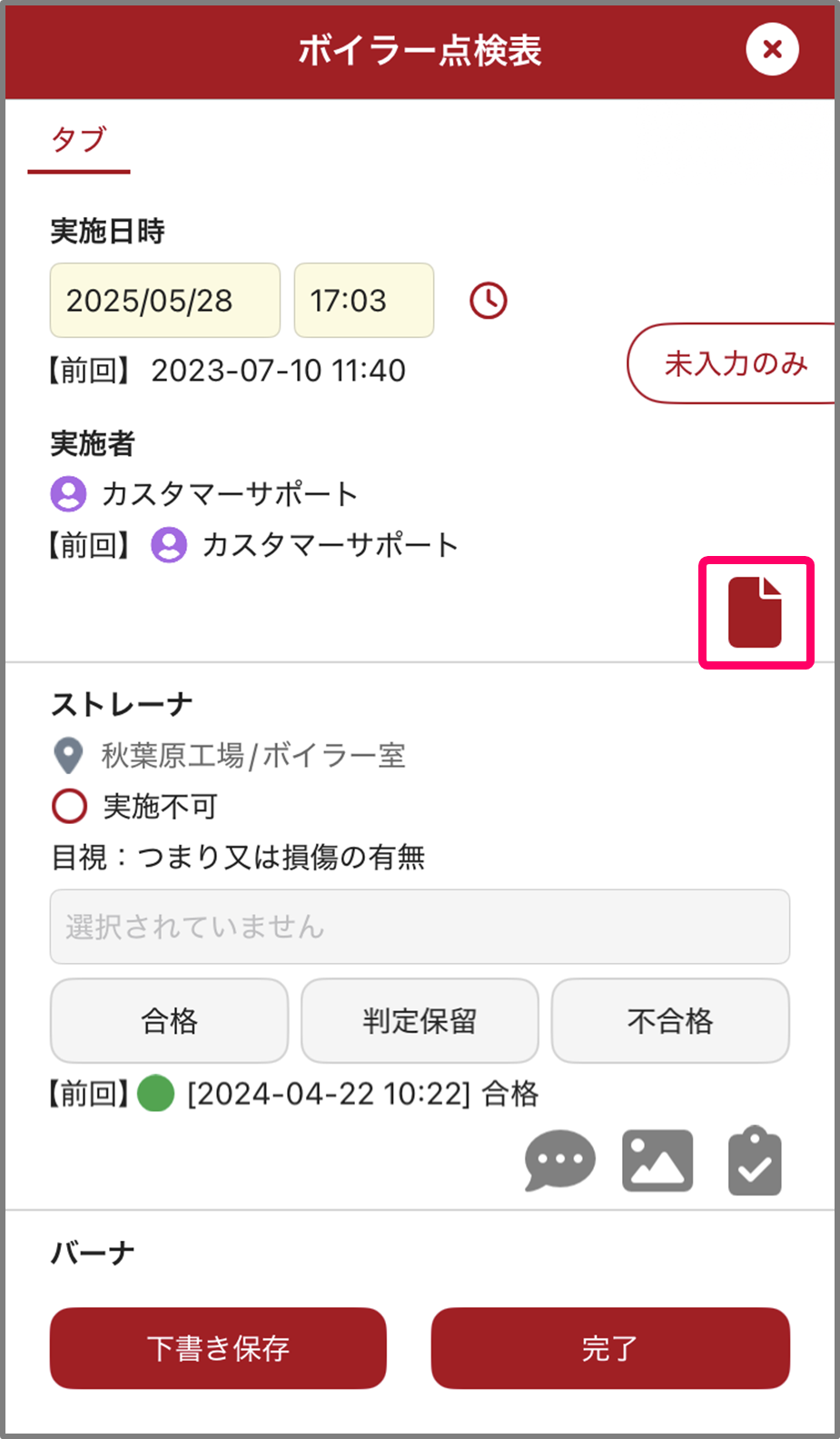チェックシートに関連ファイルが登録されている場合、画面上部の右側にファイルのアイコンが表示されます。