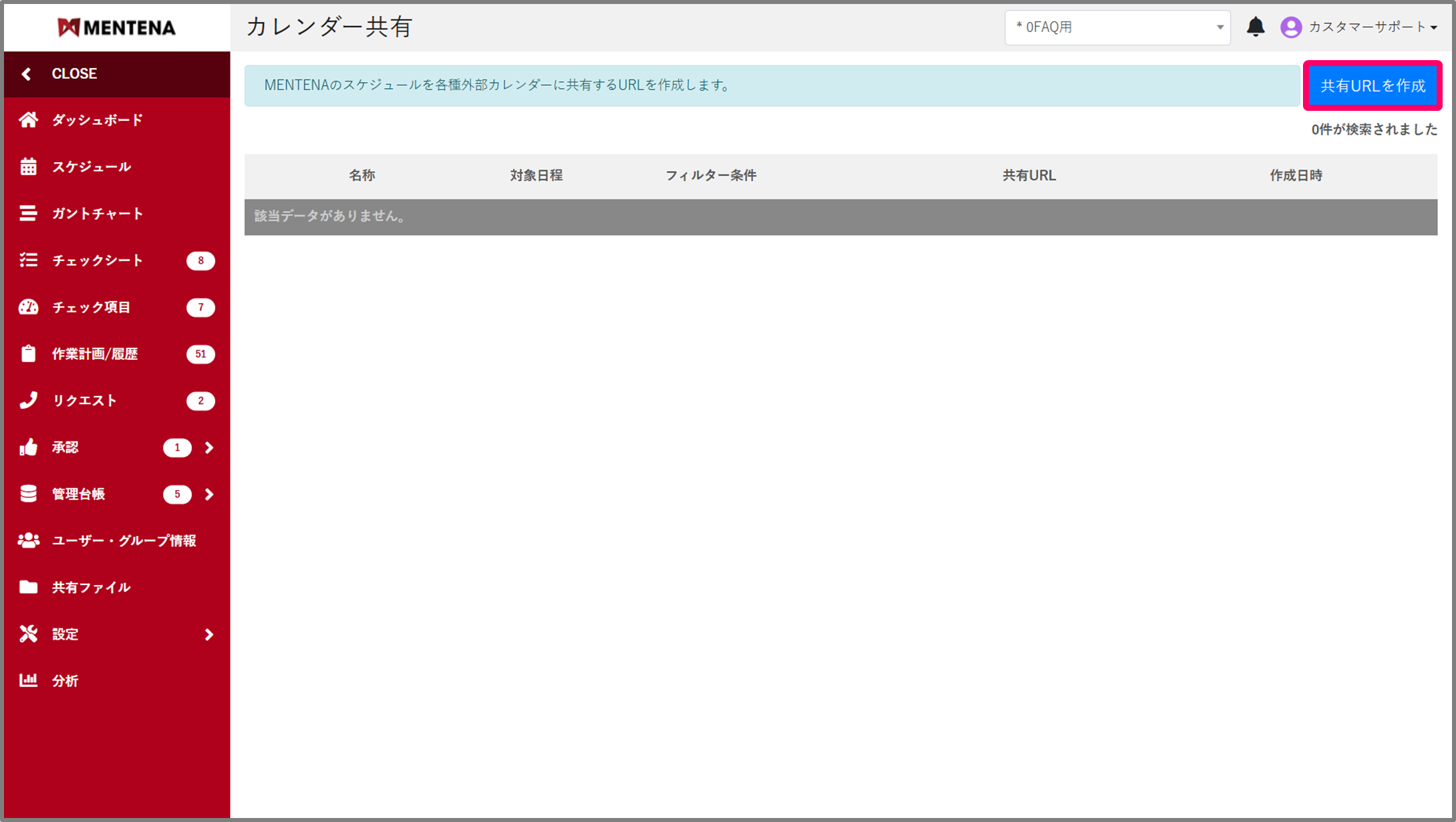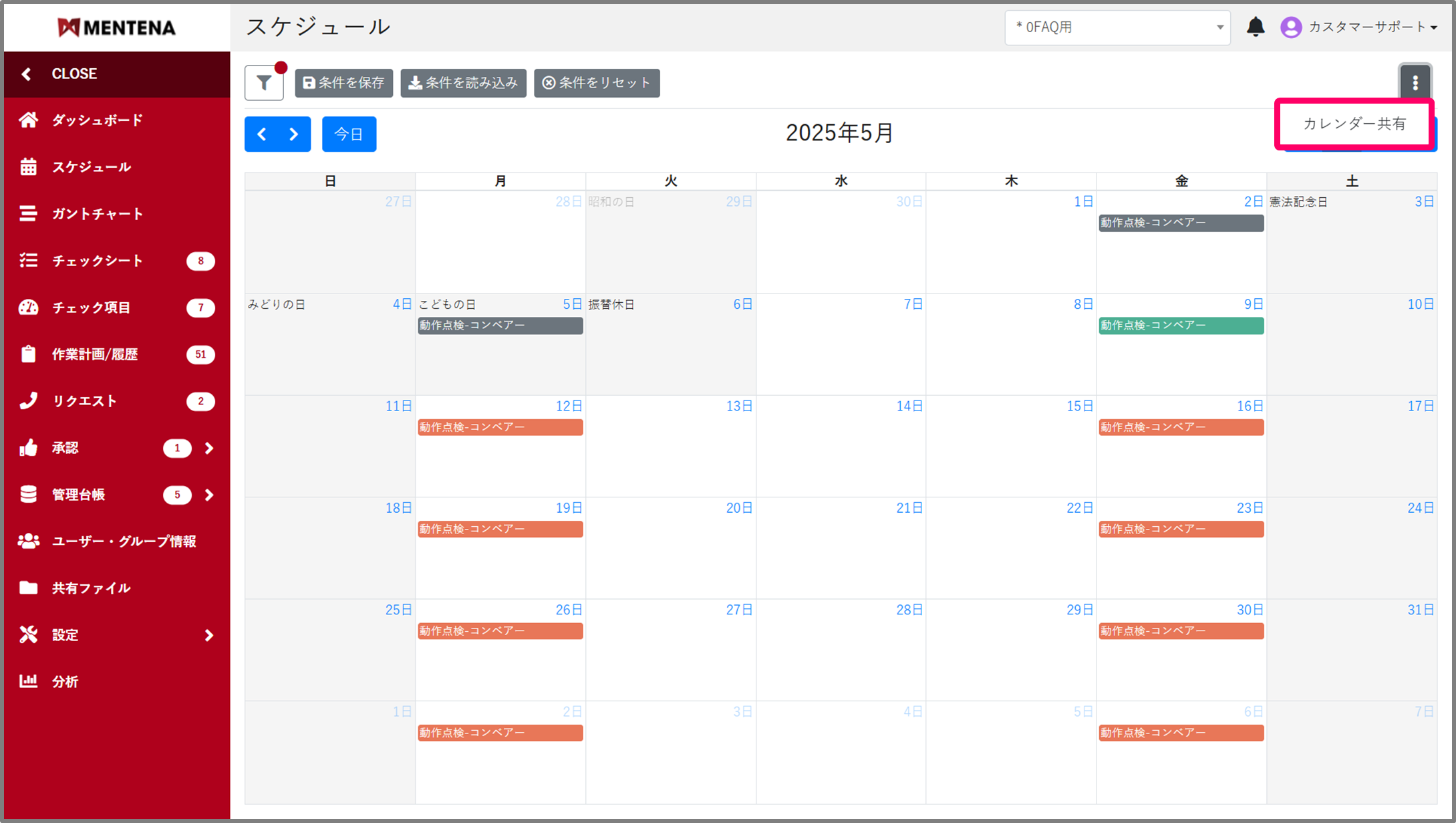 このページでは、MENTENAの作業計画/履歴のスケジュールを各種外部カレンダー(GoogleカレンダーOutlookなど)に共有する方法についてご紹介します。